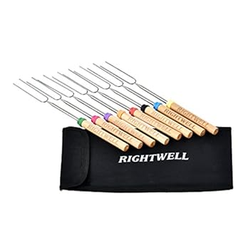 Rightwell Set von 8 Teleskop Eibisch-Röstung Sticks 32-Zoll-Teleskop Hot Dog Gabeln Spieße -BBQ Roasting Gabeln Spieße Stöcke für Kinder-FREE Canvas Pouch