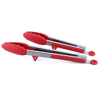 grillzange mit integriertem Standfuß – küchenzange aus hochwertigem edelstahl und lebensmittelqualität silikon – servierzange für sauberes Ablegen beim Kochen – rutchfest & hitzebeständig universal zange mit intelligenten sicherungsclip – Das Beste küchenhelfer zum kochen, servieren, Grill, Buffet, salat, Eis, Ofen (2er Set/ 23cm&30,5cm)