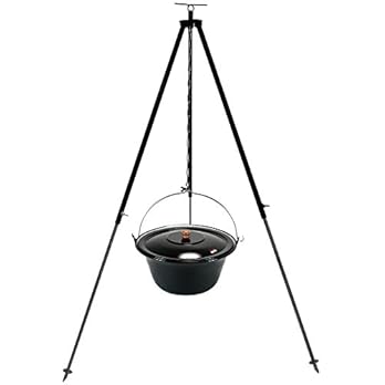 Grillplanet ungarisches Dreibein 1,80 m (Kettenhöhenverstellung) mit Gulaschkessel 15 L und Deckel emailliert