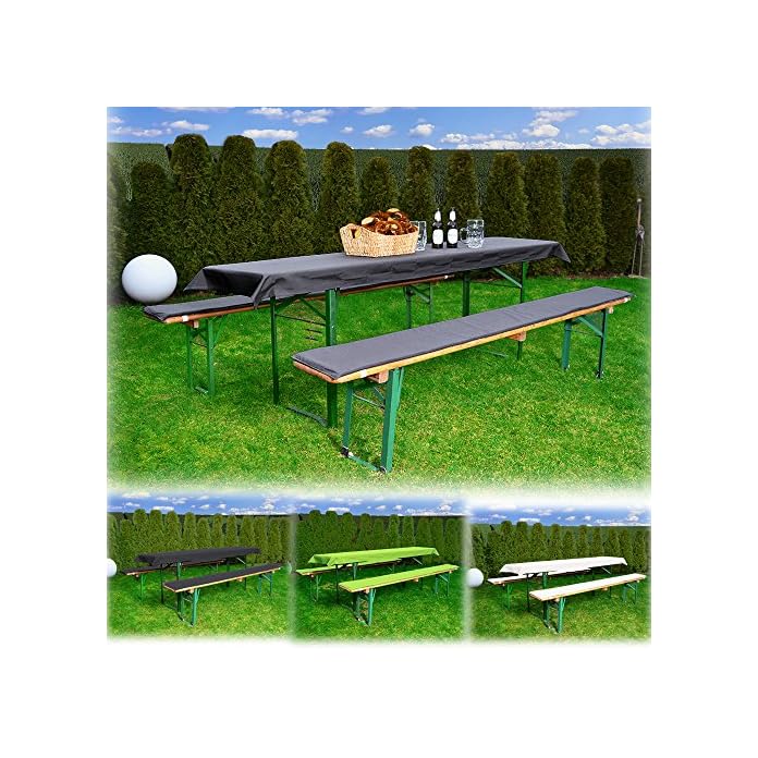€16,99 inkl. MwSt. zzgl. Versandkosten von Amazon.de / dem HändlerBiertischhusse Tisch + 2 gepolsterte Bierbankhussen -bodenlange Husse für Standard Bierzeltgarnitur Festzeltgarnitur – versch. Farben