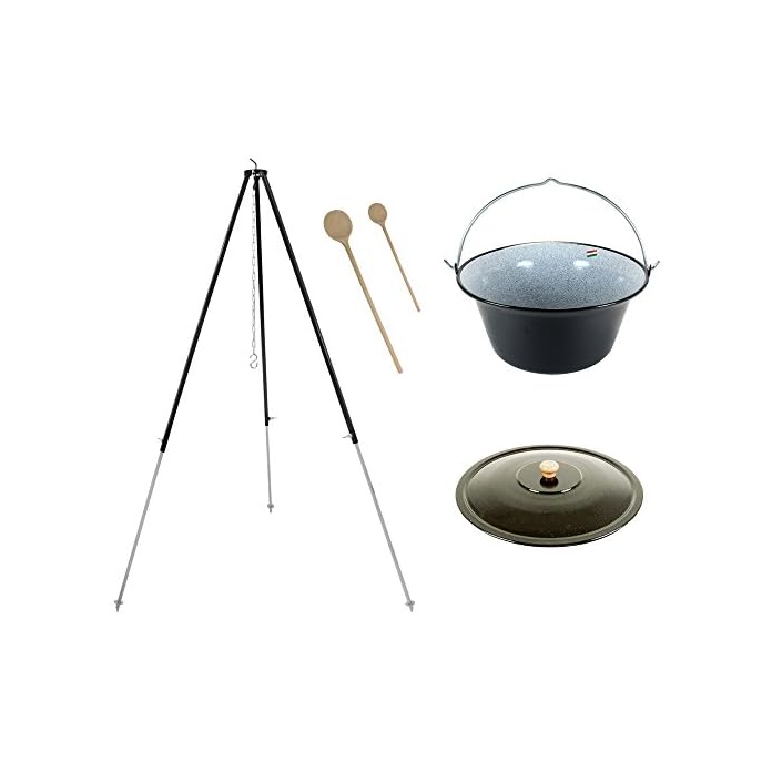 €81,90 inkl. MwSt. zzgl. Versandkosten von Amazon.de / dem HändlerGulaschkessel 15 Liter emailliert, Teleskopgestell 160 extra stark verzinkt Deckel Feuerstelle Holzlöffel