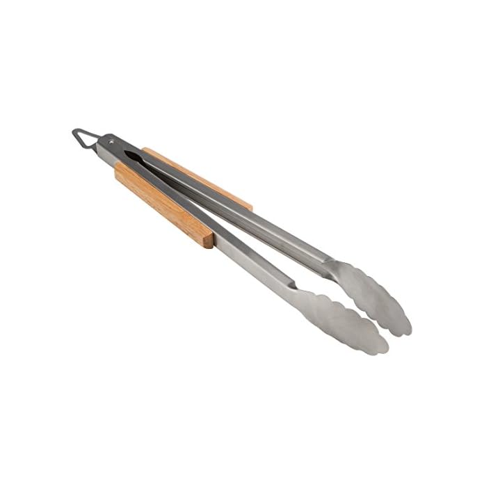 Campingaz – Hochwertiger Premium Grillzange aus massiven Edelstahl, Kunststoffgriff mit Lederbändchen zum Aufhängen, Länge 46 cm