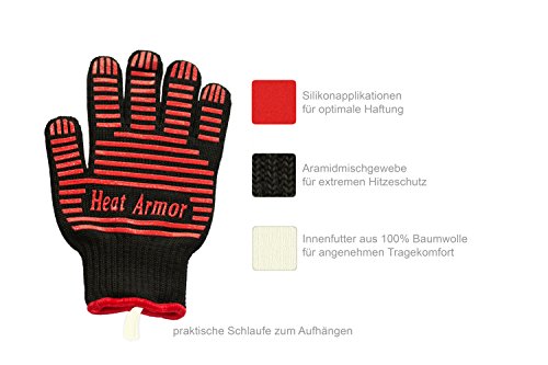 AUSGEZEICHNETER HITZESCHUTZ FÜR IHRE HÄNDE durch die Verwendung eines speziellen Aramidmischgewebes, welches z.B. auch bei Feuerwehrausrüstung verwendet wird; extremer Hitzeschutz bis zu 500°C.