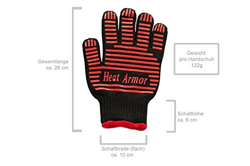 Einsatzbereiche: Perfekt geeignet für den Einsatz am Grill, Smoker, beim Barbecue, am Ofen, der Mikrowelle, beim Backen, am Kamin, beim Handhaben von heißen Gegenständen, Wechseln von Glühbirnen, als Untersetzer für heiße Pfannen und Töpfe sowie zum Nachlegen von Kaminholz, Briketts etc.