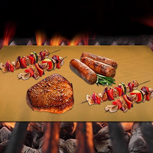 KINGCOO 5 Stücke BBQ Grillmatte Kochen Matte, Wiederverwendbare Antihaft Backmatte Ofen Liner für Kohle,Gas Grillen Herd Kochen und Backen 40×33 cm (Gold) günstig kaufen von KINGCOO im Onlineshop für Grills und Grill-Zubehör – alles zum Grillen.