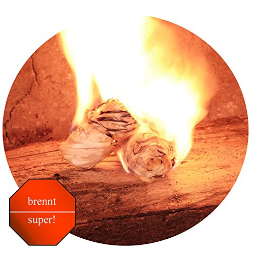 Die Öko-Anzündwolle wird auf Basis nachwachsender Rohstoffe aus reinem Naturholz und Wachs hergestellt. Die Anzünder werden lose und unverpackt im Versandkarton geliefert. Diese in Deutschland hergestellten Holzanzünder eignen sich zum sicheren, geruchsarmen und sauberen Anzünden. Mit dieser in Wachs getränkten Holzwolle gelingt das Anzünden wegen extra heißer Flamme auch mit feuchterem Brennmaterial.
