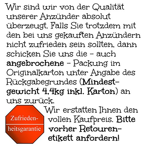 Die Anzünder sind unterschiedlich groß mit unterschiedlichen Brenndauern. Sie sind leicht anzuzünden – aber nicht selbstentzündend. Es gibt absolut keine Explosionsgefahr. Produktqualität entspricht DIN EN1860-3