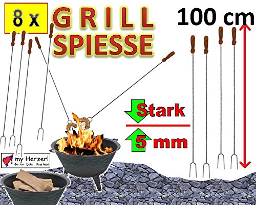 Artikelmerkmale: 8 Grillspieße 1 Meter lang “ Typ BBQ GrSp100 “ Anwendung: Sicherer 100 cm Abstand zur Grillstelle bzw. zum Feuer NEU MIT Gabelspiesser: Mit der patenten Doppelspitze bleibt die Wurst am Spiess, Wetterfester Holzgriff: optimale Isolierung gegen Hitze, Gedrehter Stahl: Sehr gut & STABILauch bei schwerem Grillgut + optisch ansprechend, Camping und Zelten mit zünftigem Lagerfeuer: auch für Marshmellows, Brot, Tomaten, Kartoffeln…