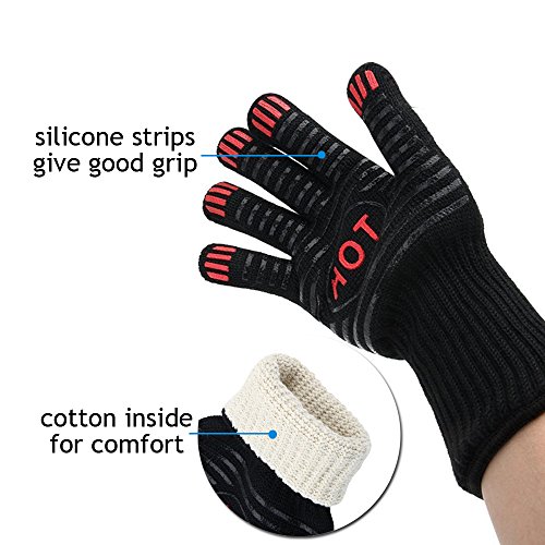 HÖCHSTE SICHERHEIT – Die Hitzebeständigkeit des Handschuh ist bis 250° C. Mit extra langem Bündchen ( 8.5cm ) kann der Handschuh Ihren Handgelenk schützen.