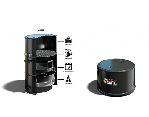Lieferumfang: 1 x 4Grill Fass bestehend aus 3 Segmenten 1 x Edelstahl Grillrost 1 x Pulverbeschichteter Deckel