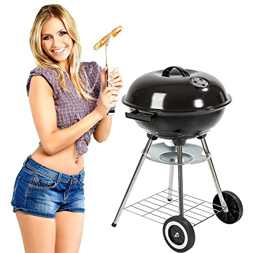 Leichter Deckel und Kessel mit feuerfester Spezial-Beschichtung – Edelstahl-Ablage, überdimensionierter Deckel-Griff für optimalen Hitzeschutz, stabiler Aschebehälter, leichter Transport durch die zwei großen Räder und hitzegeschützte Griffe