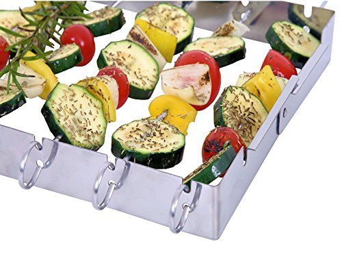 Diese stabilen Edelstahlspieße machen das Grillen zu einem abwechslungsreichen Grillgenuss. Neben Fleisch, Fisch und Geflügel können auch Gemüse und Obst auf die 6 stabilen Spieße aufgesteckt und gegrillt werden. Kreieren Sie Ihre ganz persönlichen Leckerbissen und überraschen Sie Gäste mit außergewöhnlichen Geschmackserlebnissen. Dank des praktischen Rahmens kommt das Grillgut nicht mit dem Grillrost in Berührung, bleibt schön saftig und trocknet nicht aus. Es rollt nicht auf dem Grill umher und die Spieße können problemlos gewendet werden.
