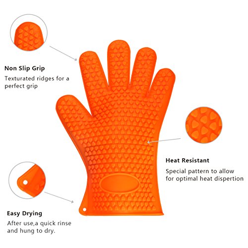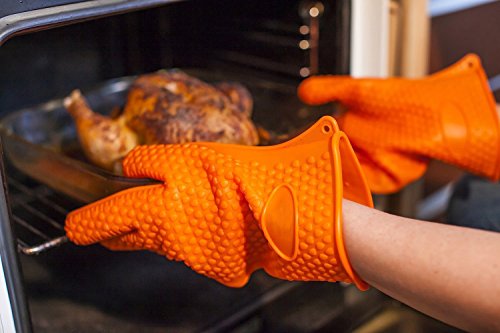 – Silikon Handschuhe: verfügen über Hitzebeständigkeit und niedrige Temperatur Widerstand, 536 F maximale Betriebstemperatur, rutschfeste Oberfläche, Wasserdicht, fleckenresistent und geruchsresistent, Lebensmittelqualität für Umgang mit heißen oder gefrorene Lebensmittel direkt und schützt Ihre Hände vor Verschütten und Verbrennungen und Unfälle zu vermeiden Abrutschen; geeignet zum Grillen, Kochen, BBQ und Küche verwendet