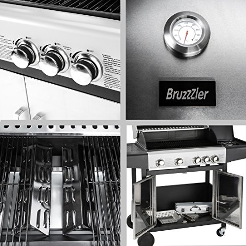 €39,99 inkl. MwSt. zzgl. Versandkosten von Amazon.de / dem HändlerBruzzzler Edelstahl 4+1 Gasgrill mit Thermometer, 4 Brenner Einheiten + Seitenkocher / 14KW Nennleistung, silber / schwarz günstig kaufen von im Onlineshop für Grills und Grill-Zubehör – alles zum Grillen.