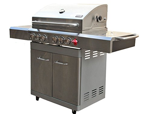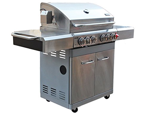 DMS 411 Gasgrill Neben den 4 Hauptbrennern kann dieser Grill mit einem Infrarot-Backburner und einem Wok-Brenner punkten. Auch ganze Hähnchen oder Spießbraten sind dank des elektrischen Drehspießes kein Problem mehr. Durch den integrierten Wok-Brenner können sie außerdem auch asiatische Gerichte, Nachspeisen, Glühwein etc. zubereiten. Produktbeschreibung: – Material: Edelstahl (Haube & Türen Doppelwandig) – Grillfläche: 71 x 46 cm – 4 getrennt regelbare Edelstahl Brenner – 1 Wok- Brenner – 1 Infrarot-Backburner – mit Flammenabweiser um die Hauptbrenner vor tropfendem Fett zu schützen – Flaschenöffner – Handtuchhalter – Temperaturanzeige – ausziehbare Fettauffangwanne – Warmhalterost – elektrischer Drehspieß – 4 massive Laufrollen, davon 2 feststellbar – großzügiger Stauraum + Gasflaschenhalterung – Piezo- Zündung in jedem Gaszufuhrregler integriert Technische Daten: – Gesamtleistung: 22 kW – Gasart: Butan, Propan, LPG, Gasgemisch – Gasdruck: 50 mbar – Gasverbrauch: 1607 g/h – Gasdüse: Hauptbrenner- 0,84 mm / Seitenbrenner- 0,79 – Gesamtabmessung: 146 x 65 x 118 cm (B x T x H) – Gewicht: ~ 60 kg Lieferumfang: – Gasgrill (wie beschrieben, ohne Gasflasche) – Anschluss- Set – Drehspieß – Ausführliche deutsche Aufbau- / Bedienungsanleitung