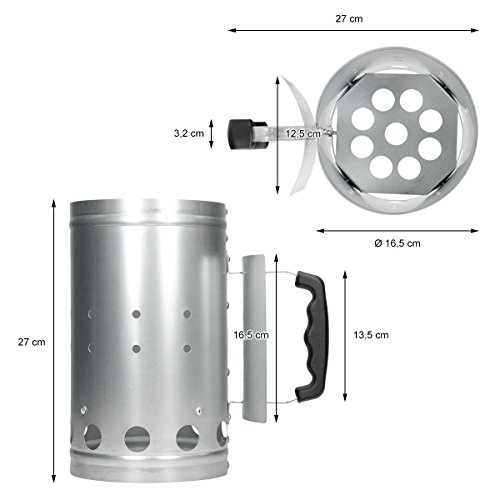 HOCHWERTIG – Dank des stabilen Zylinders der aus verzinktem Stahl hergestellt ist, wird ein schnelles Durchglühen der Grillkohle ermöglicht