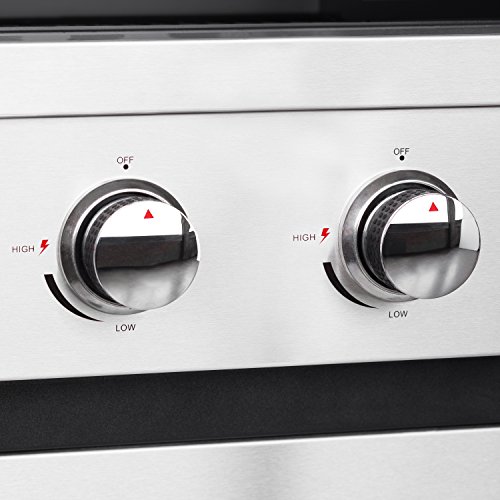 – Gesamtleistung: 2 stufenlos regulierbare Edelstahlbrenner mit 7,5 kW, batterielose Piezozündung (Deluxe mit Infrarot Keramikbrenner)