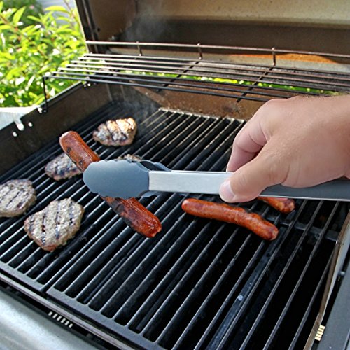 Völlig sicher für die Verwendung auf Antihaft-Oberflächen schmutzabweisend sowie hitzebeständig bis 250 ° C (482 ° F). Natürlich ist die Edelstahl Grillzange einfach unter fließendem Wasser zu reinigen. Der schnell zu betätigende Schiebemechanismus hält die Grillzange nach Gebrauch geschlossen.