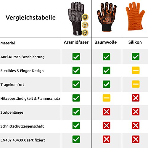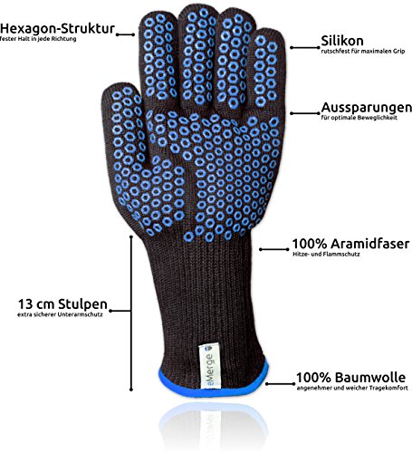 EXTREMER HITZESCHUTZ bis 500°Grad durch bewährte Qualität. Aramid-Fasern (auch unter Nomex oder Kevlar bekannt) sind hitzebeständig & feuerfest. Wir bieten Ihnen kleine und große Ofenhandschuhe an