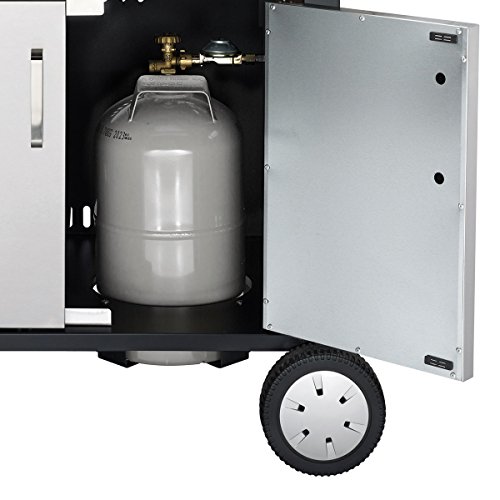 1 stabiles abklappbares Seitenteil ermöglicht platzsparendes Verstauen, 5 kg Gasflasche kann sicher und einfach im Container verstaut werden