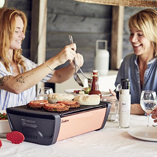 Das ansprechende Design orientiert sich auch an praktischen Anforderungen. Die flache Bauweise macht den Grill auf dem Tisch besonders praktisch. Die Hitze verteilt sich gleichmäßig bis in die Randzonen, die emaillierte Grillfläche fasst reichlich Fleisch und anderes Grillgut.