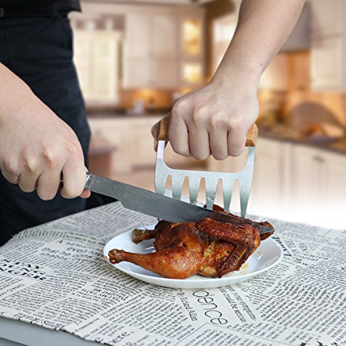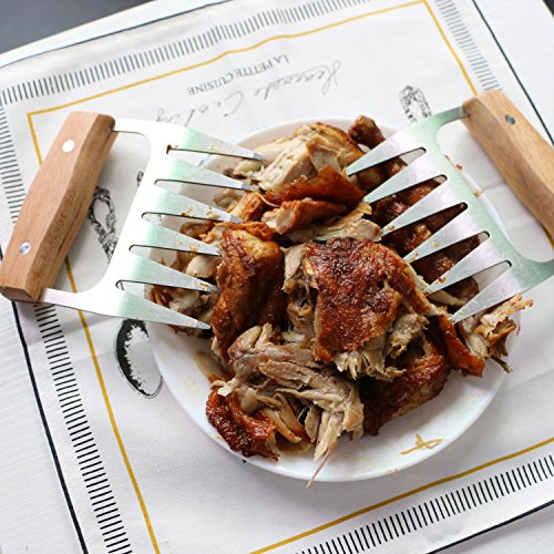 EINFACH ZU REINIGEN – Edelstahl fleischspalter absorbiert kein Öl, leicht zu reinigen, holzgriff ist nicht einfach zu schmieren, und spülmaschinenfest ist verfügbar.