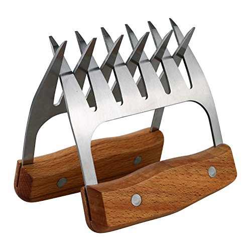 HOHE QUALITÄT – Vergleichen sie mit einigen plastik- oder Nylonklauen, die schmelzen oder verbiegen und Lebensmittelsicherheitsprobleme verursachen können. Unsere haltbaren Klauen werden aus 420J rostfreiem stahl und buchenholz hergestellt, schmelzen oder biegen nie und nehmen eine Hitzebeständigkeit von 600 °can.