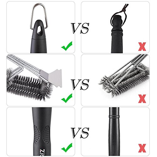 【Hohe Qualität】Die – Zibabie- Grillbürsten bestehen aus hochwertigem Edelstahl und sind somit rostfrei, extrem stabil und langlebig. Die Bürsten können bedenkenlos in der Spülmaschine gereinigt werden. Den Griff kann man mit einem Haken auf dem Grill hängen oder an der Wand.