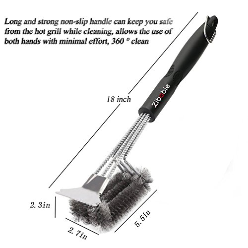 Zibabie Profi BBQ Grillbürste Edelstahl Gewebter Draht 3 in 1 mit starken Schaber, 360 ° Reinigung, 18″ Extra Langer, effektiv, stabil und langlebig, Perfekter Grillreiniger für alle Grill-Typ