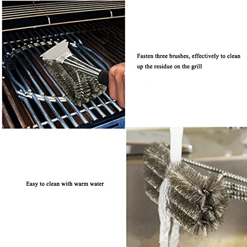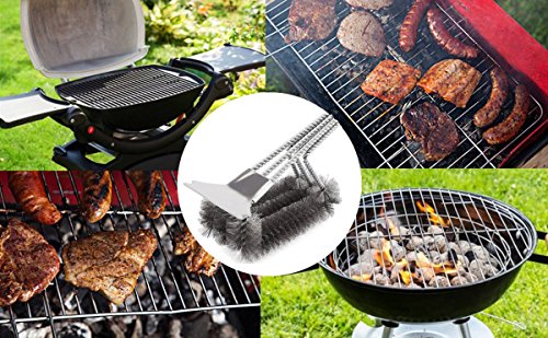【Mühelose Reinigung 】Diese BBQ Grillbürste mit den 3 Bürsten in 1 und integriertem Reinigungsschaber. Mit seinem innovativen 360 Grad-Rotator sind alle Teile des Grills schnell und einfach zu reinigen. Durch die drei hochwertigen Borsten aus Edelstahl kannst du mit extrem geringem Kraftaufwand den Grill blitzschnell säubern.