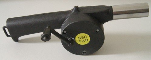 OHNE STROM: Handbetriebener Grillfön, es wird kein Strom benötigt.