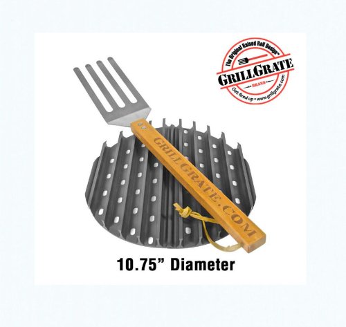 GRILLGRATES sind ineinander greifenden Platten, die oben auf jeder Grill liegend, eine neue Grillfläche bilden. Dazu gehört das „Grate Tool „, das zwischen die Schienen passt um das Grillgut aufzuheben ohne zu kratzen. GRILLGRATES sind aus Flugzeug-Aluminium, das hartanodisiert (eine natürliche Härtevorgang), ist und eine äußerst haltbare, ultra-harte Oberfläche besitzt.Dieses Material besitzt eine viel bessere Wärmeleitfähigkeit als Stahl oder Gusseisen. GrillGrates sind effizienter und werden niemals rosten. 1.Angrillen und Branden: Die erhöhten Schienen liefern einzigartige Branding Marken durch die Abgabe der Hitze über die schmale Fläche. Die Hitze wird unten gesammelt und konzentriert nach oben geleitet auf Grund der hohen Wärmeleitfähigkeit des Materials. 2. Brutzeln In den Sicken sammeln sich Säfte und Dämpfe und brutzeln für zusätzlichen Geschmack, Feuchtigkeit und Saftigkeit. 3. Strahlung Die Wärmeabstrahlung auf Grund der zusätzlichen Masse und Form sorgt für schnelles und gleichmäßiges Garen. 4. Schutzfunktion Der geschlossene Boden mit den kleinen Löchern schützt vor Verkohlung durch Fettbrand und Austrocknung durch zu viel Hitze. Abfließendes Fett verbrennt direkt unter dem Boden der GRILLGRATES und gelangt nicht direkt in die Glut. 5. Doppelnutzen Durch Umdrehen der GRILLGRATES können sie die Unterseite perfekt nutzen, um kleines Grillgut zu garen sowie Fisch und andere Dinge zu braten. 6. Das GrateTool ist ein integraler Teil des GRILLGRATE- Systems. Es passt zwischen die Schienen um das Grillgut ohne Kratzen aufzuheben. Es dient auch als eine Reinigungsvorrichtung um Reste und Schmutz aus den Tälern zu entfernen. GRILLGRATES sind Sets, die GrateTool sowie individuelle Einzel-Roste beinhalten.