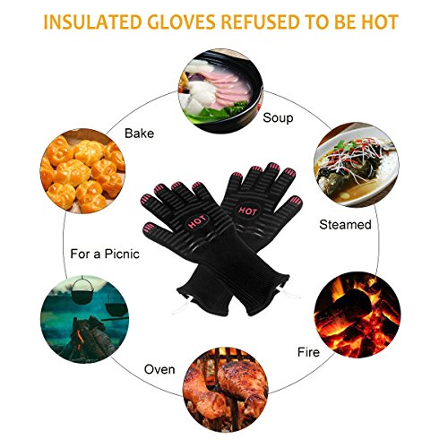 Anwendungen und Sicherheit: Perfekt zum Grillen, Kochen, Backen, Mikrowelle oder zum Tragen von super heißen Gegenständen in der Küche oder im Freien. Jeder Handschuh hat die EN407-Zertifizierung und die Hitzebeständigkeit beträgt Klasse 4.
