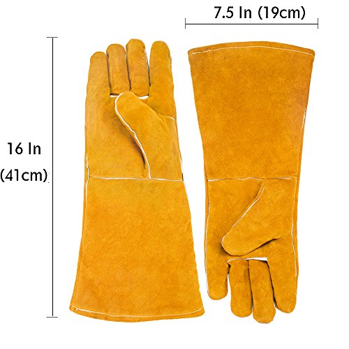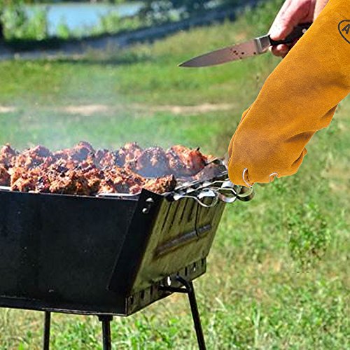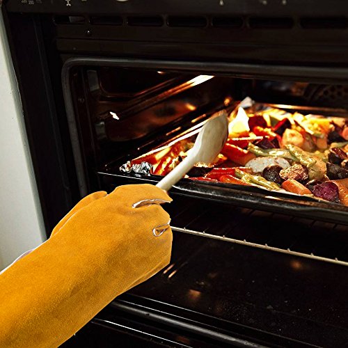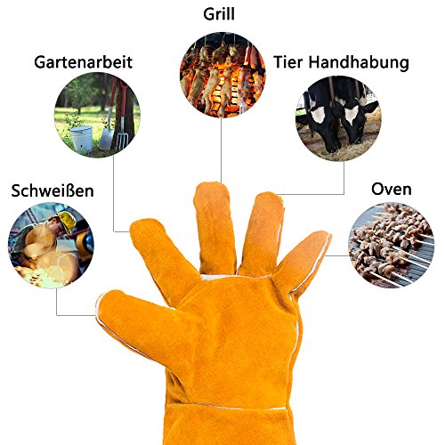 Weitbereichs Anwendung – Diese Handschuheigenschaften und ausgezeichnete Qualität machen es nützlich für Schweißen, Grill, Barbecue, Holzofen, Ofen, Kamin, Schneiden, Gartenarbeit, Camping, Lagerfeuer, Tier Handhabung und vieles mehr.