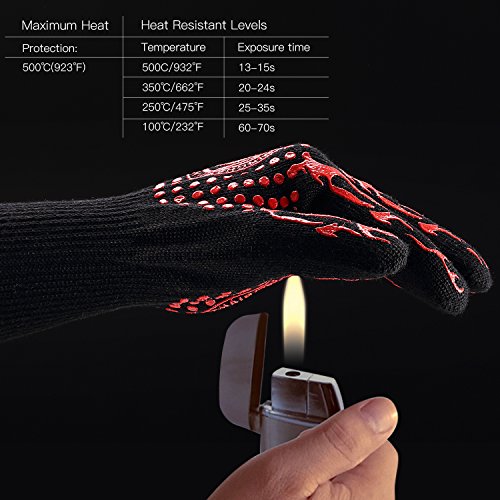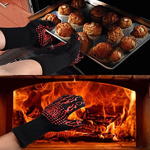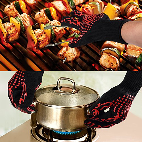 Design Grillhandschuhe lang, für Profis, Premium Qualität bis 500°C, Finger Handschuhe, 1 Paar, rutschfest dank Flexi-Grip, verwendbar als Ofenhandschuhe, Topflappen, Schutzhandschuhe, Kochhandschuhe, Backhandschuhe, Barbecue BBQ, EN407 Zertifikat, extremer Hitzeschutz durch Nomex und Aramid Fasern mit Silikonbeschichtung