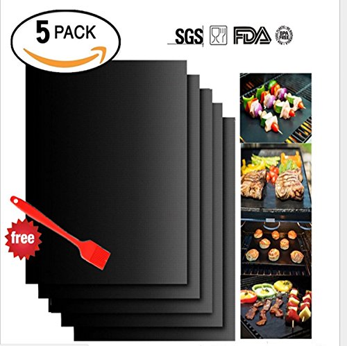 Grillmatte (5er Set) zum Grillen und Backen – Non Stick Ofen Liner Teflon Kochen Matten – Wiederverwendbar, Langlebig, Hitzebeständig und Leicht zu Reinigen, Barbecue Bettwäsche zum Grillen Fleisch, Gemüse, Meeresfrüchte, Eier – Ideal für Holzkohle Grill / Gas Grill / Elektro Grill(40 X 33 CM) by YUL