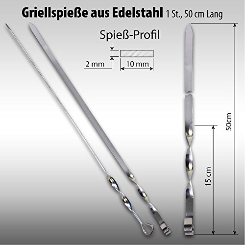 €24,36 inkl. MwSt. zzgl. Versandkosten von Amazon.de / dem HändlerGrillspieße aus Edelstahl für Schaschlik 10-er SET, Metall Stärke 2mm, länge 50cm oder 60cm und günstig kaufen von WALLNER Group im Onlineshop für Grills und Grill-Zubehör – alles zum Grillen.