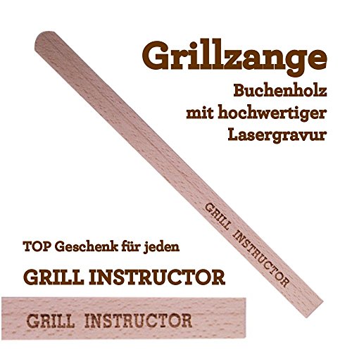 Hier erwerben Sie eine Grillzange aus geleimten Buchenholz mit hochwertigem Gravur-Text: „GRILL INSTRUCTOR“. Zum Geburtstag, Vatertag oder als tolles individuelles Geschenk ist diese Grillzange etwas ganz besonderes. Zur Grillzange: 30 cm lang, 2 cm breit, aus Buchenholz geleimt, selbstfedernd. Nicht für die Spülmaschine geeignet! Made in Europe