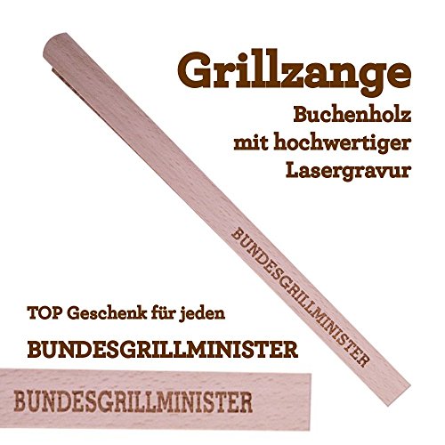 Grillzange Holz ‚Bundesgrillminister‘ Geschenk Geburtstag Grillen Mann Grillzeit