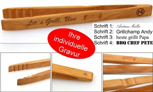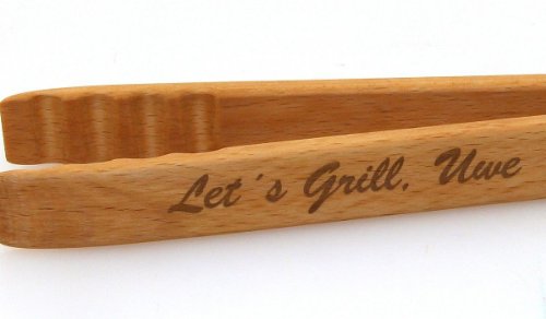 Wir gravieren Ihren Wunschtext oder Namen ! Hochwertige Grillzange in kleiner Version für den Grill oder Wok. Hergestellt in 100% Handarbeit in Deutschland aus bestem Buchenholz, vorgeölt mit Leinöl. Länge: ca, 30 cm