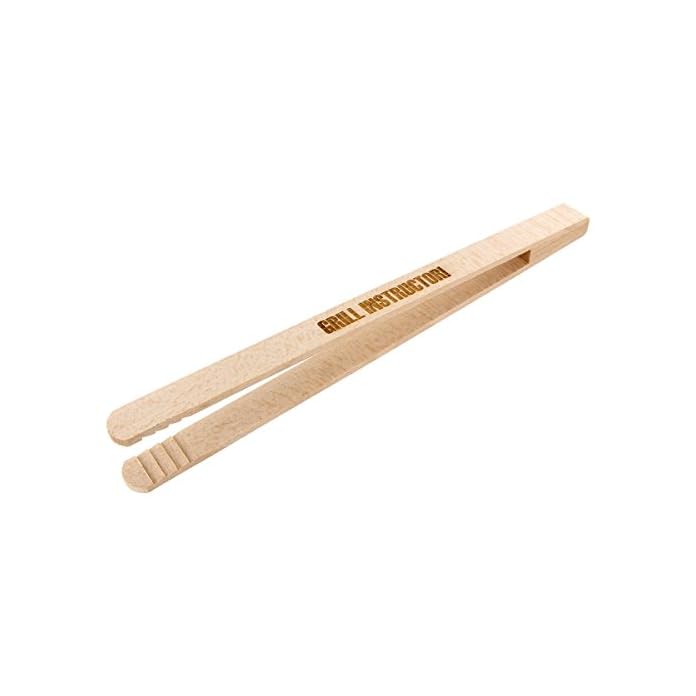 Grillzange 30cm mit Gravur aus Buchen Holz Motiv „Grill Instructor“