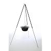 Das mitgelieferte Teleskopgestell ist voll ausgezogen ca. 180 cm gross. Mit 3 Teleskopbeinen kann die Höhe variiert werden. Der Kessel kann an der Kette weiter in verschiedenen Höhen eingehängt werden. Schwarz lackiert, Teleskopbeine verzinkt.