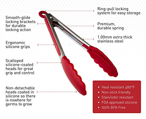 Ideale hochwertige rostfreiem Edelstahl Zange kann sowohl beim Kochen, Grillen Salat servieren, Beilagen anrichten, Fleisch wenden und vieles mehr verwendet werden, Außerdem ist ideal für beschichtet Pfannen und Töpfe Kein Verkratzen von beschichteten Pfannen mehr.