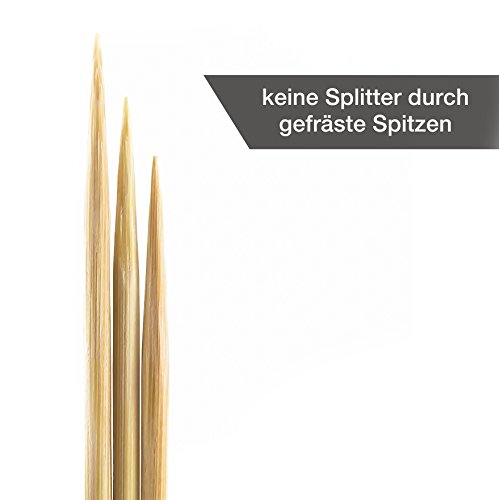 SPLITTERFREI – Herkömmliche Fleischspieße werden aus Holz gefertigt, welches durch den Herstellungsprozess oftmals viele Splitter hat. Wir setzen daher zu 100% auf qualitativen Bambus – garantiert splitterfrei!