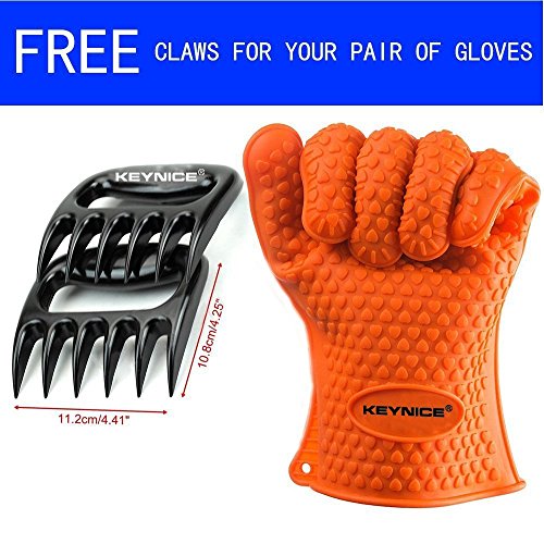 Keynice BBQ Silikonhandschuhe + Fleischklauen zum Schneiden von Fleisch (Pulled-Pork). Ofenhandschuhe aus hitzebeständigem, wasserdichtem, lebensmittelgetragenem Silikon zum Kochen, Backen und Kochen