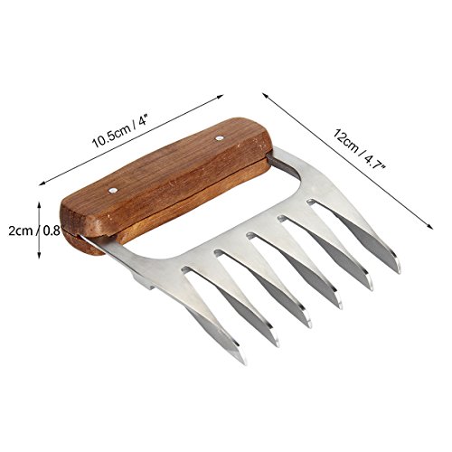Das Gewicht pro Kralle liegt bei ca. 200gramm und liegt somit gut in der Hand und durch den Griff lässt sich die Kralle sehr angenehm greifen. Beim Teilen und auseinanderziehen des Fleisches, Durch die scharfen Spitzen kommt man leicht ins Fleisch und durch die breite Fläche hat man keine Probleme selbst größere Tiere vernünftige auseinander zu legen
