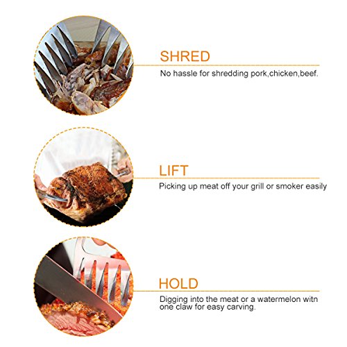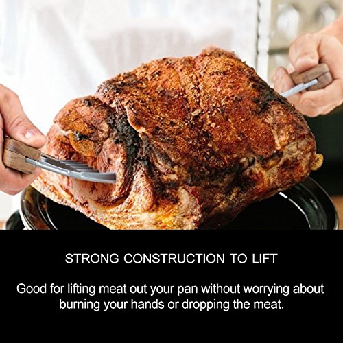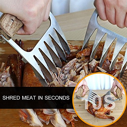 2, Super Preis-Leistungs-Verhältnis, wegen der Beschaffenheit der Materialien und der Verarbeitung. Durch die dicken Holzgriffe gute Wärmedämmung, dadurch keine Verbrennungen an den Händen. Sie leisten auch gute Dienste, wenn man Fleisch in gleichmäßige Scheiben schneiden will. Man kann sehr schön an den Krallen entlang schneiden.