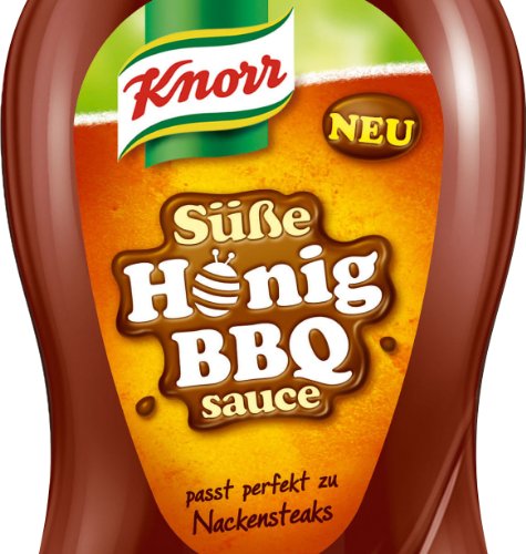 Probieren Sie die süße Knorr Schlemmersauce Honig BBQ mit typisch rauchigem Geschmack.