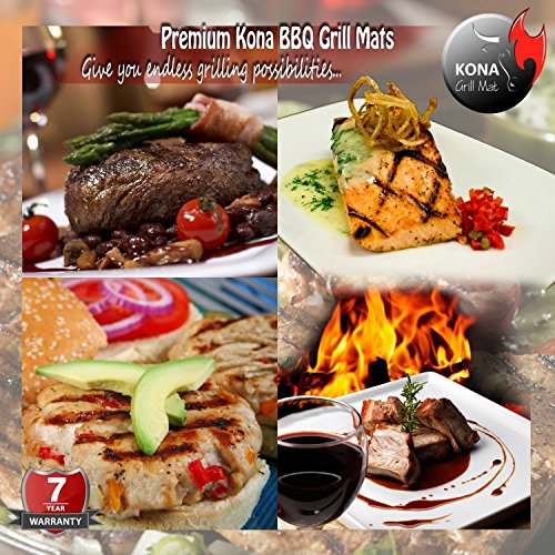 Die nicht haftenden KONA-GRILLAUFLAGEN MIT 600°F SPITZENTEMPERATURBESTÄNDIGKEIT und 500°F Grad empfohlener Schmortemperatur sind überraschend dünn, aber verbrennen nicht und schmelzen nicht.