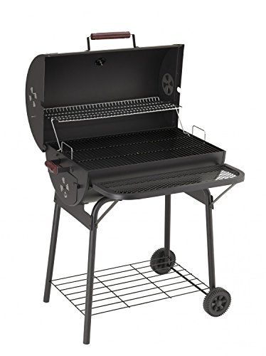Der Grillwagen Black Dog von Landmann ist ein großer Holzkohlegrillwagen mit viel Platz für die köstlichsten Grillspezialitäten. Die drei emaillierten Grillroste bieten Ihnen eine Fläche von 69 x 45 cm auf denen Sie Fleisch wie Würstchen und Steaks, aber auch leckeren Fisch und Gemüse zubereiten können.